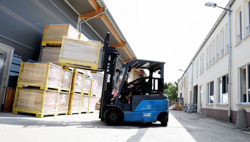 Die Werkstatt-Mitarbeiter erledigen hier Transport-Arbeiten.