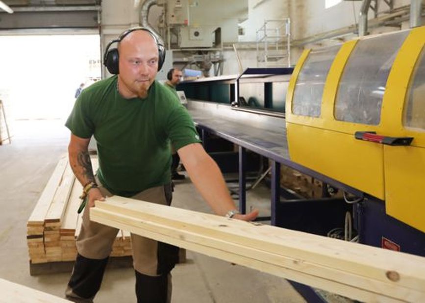 Die Werkstatt-Mitarbeiter in der Tischlerei stellen viele Bau-Teile her. Für die Industrie.
